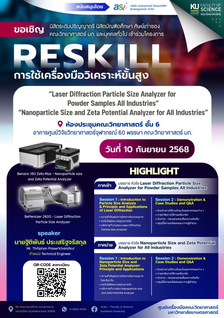 ขอเชิญเข้าร่วมโครงการ Reskill การใช้เครื่องมือวิเคราะห์ขั้นสูง สำหรับนิสิตระดับปริญญาตรี บัณฑิตศึกษา ศิษย์เก่า บุคลากรภายในและภายนอกคณะวิทยาศาสตร์ มก. รวมถึงบุคคลทั่วไป